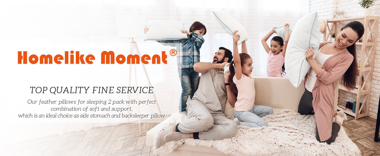 Homelike Moment Down Feather Pillows Standard – 2 Pack Feather Bed Pillows for Sleeping Standard Size Pillow Set of 2 100% Cotton Cover