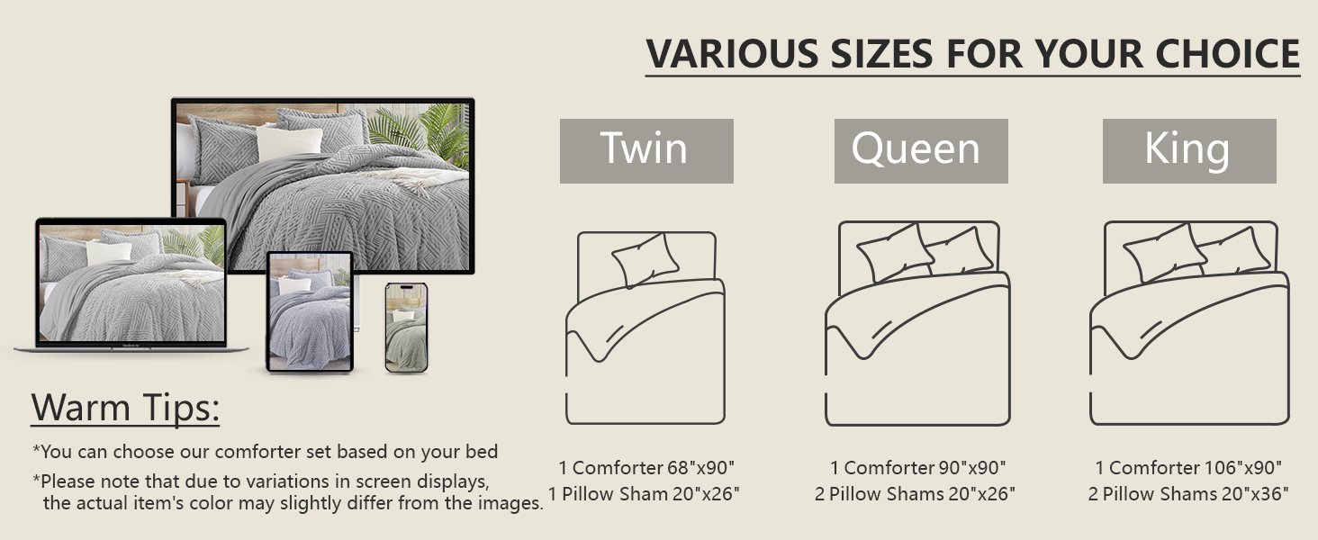 [Luxury Home Decor & Fluffy Warm] The gray comforters queen size features tufted pattern with reversible design, you can get two stylish looks in one, making it easy to refresh your home decor anytime. Designed for ultimate coziness, the warm comforter for winter comes in your choice of elegant textures or contemporary geometric patterns, both providing luxurious warmth during chilly nights.