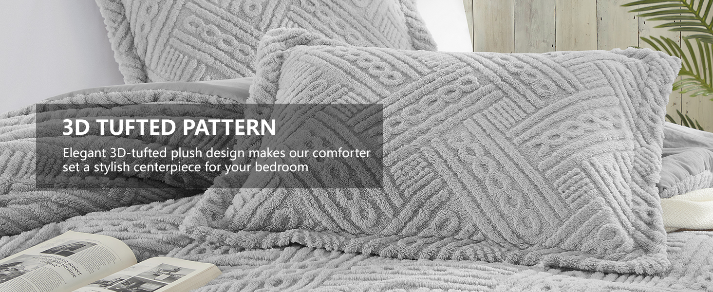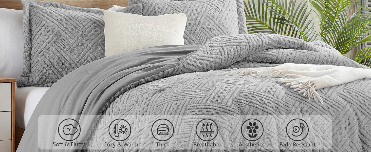 [Luxury Home Decor & Fluffy Warm] The gray comforters queen size features tufted pattern with reversible design, you can get two stylish looks in one, making it easy to refresh your home decor anytime. Designed for ultimate coziness, the warm comforter for winter comes in your choice of elegant textures or contemporary geometric patterns, both providing luxurious warmth during chilly nights.