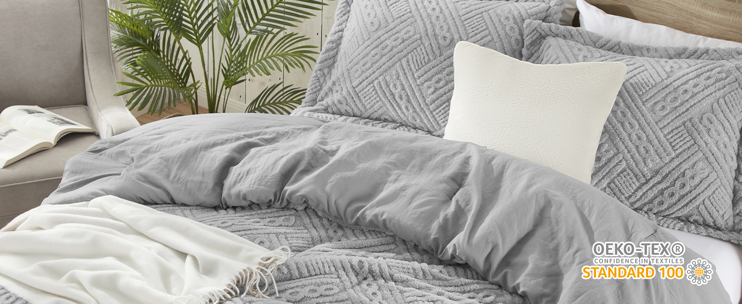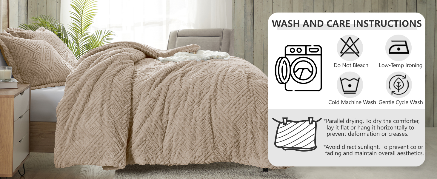 【Easy Care & No Clumping】This grey comforter full size is easy to care and stays fluffy warm after many washes. No clumping, no shifting, no color fading and no shrinkage. Just cold machine washing, gentle cycle, and low-temperature ironing for restoration, the queen size comforter comes out fresh and fluffy every time. Ready to wrap yourself in cozy warmth like the day you first got it.